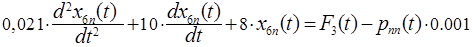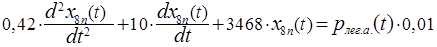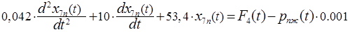 )Уравнение движения поршня с пружиной, которое имитирует жесткость сосудов полой вены.