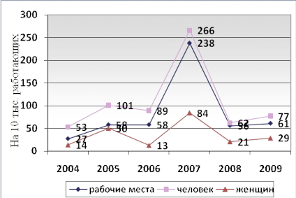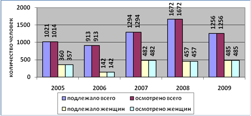 В 2009 году подлежало медосмотрам 1256 работающих с вредными и опасными условиями труда, в том числе 485 женщин. Охват периодическими медицинскими осмотрами (ПМО) работающих района составил 100%.
